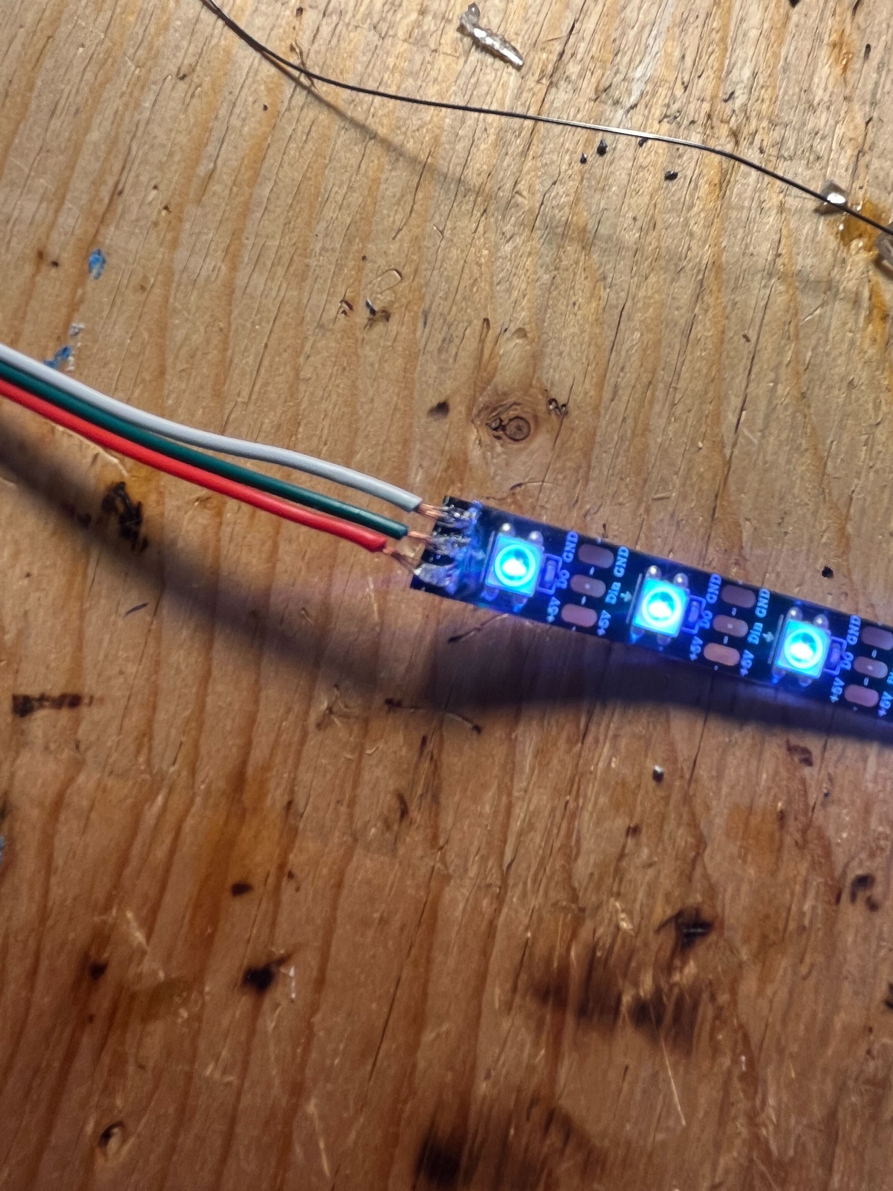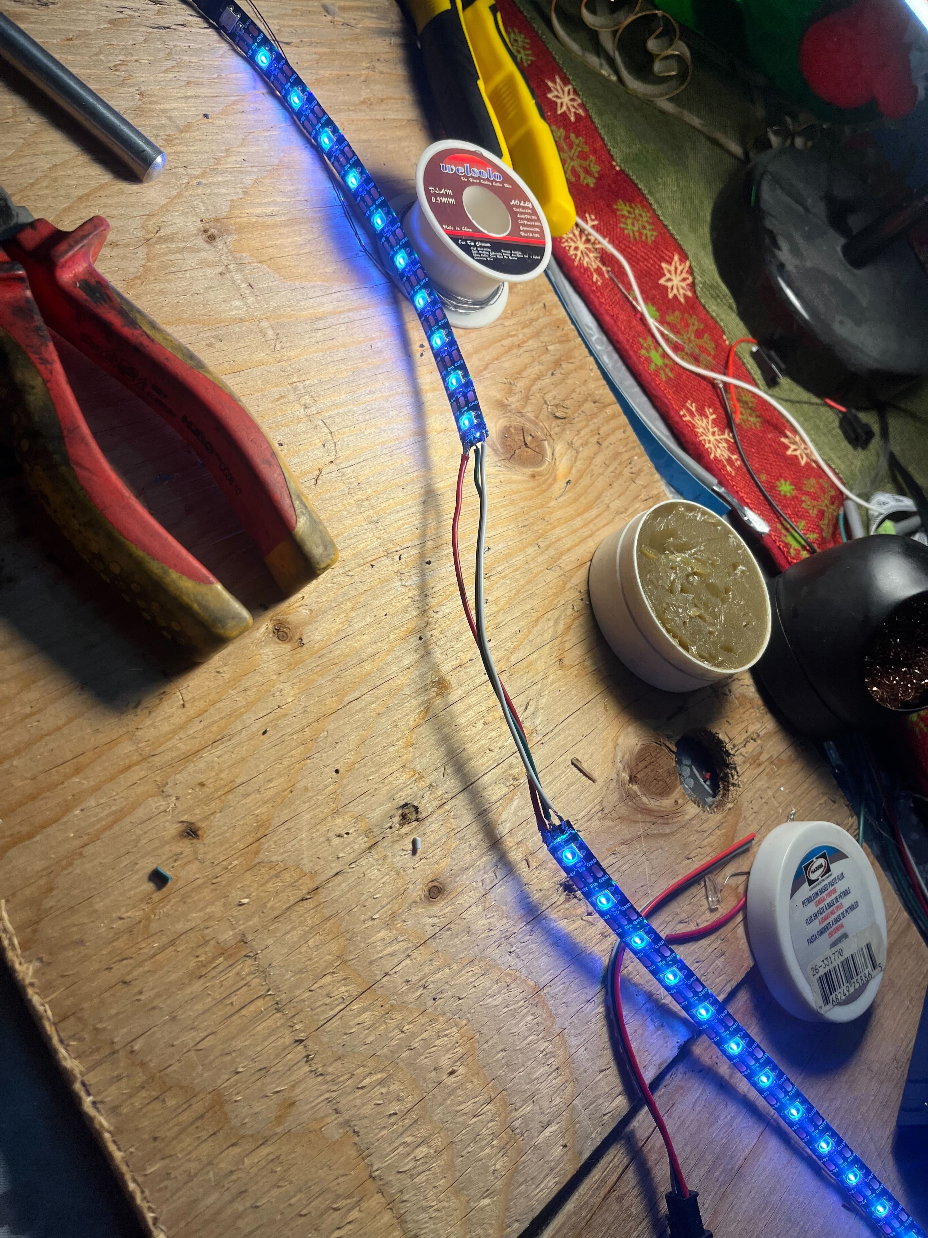 I had to solder each light strip together. There were 7 dual ended light strips with 3 connections (power, data line, ground). So it was a lot of effort! After soldering each connection, I secured it with heat shrink.